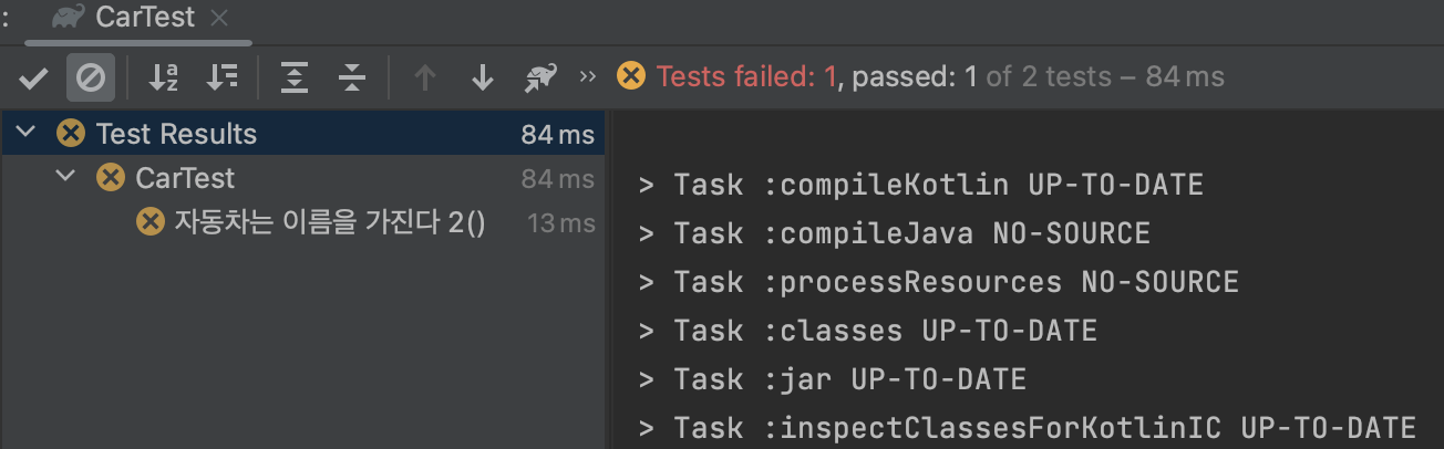 test 가 fail 했다는 것은 즉 Car 를 고쳐야 할 근거가 생겼다는 것이다.