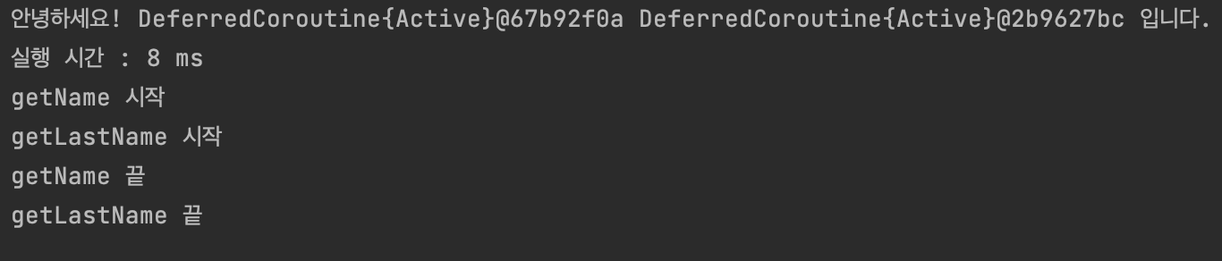 println("안녕하세요! ${name.await()} ${lastName.await()} 입니다.")