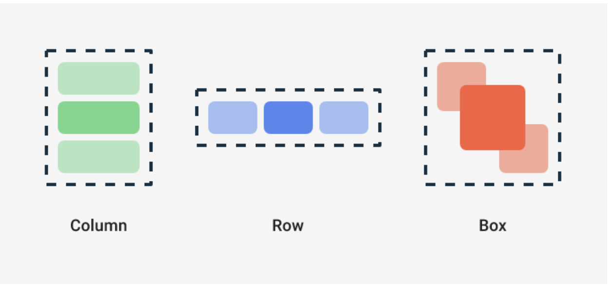 위는 Column, Row, Box 는 세가지 기본 표준 레이아웃 요소이다.