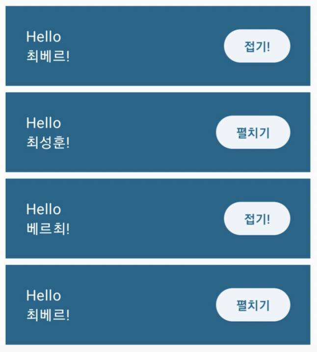 현제 항목이 펼쳐진 상태인지 접힌 상태인지 저장할 필요가 있다. 이 값의 논리적 위치는 Greeting 컴포저블에 있다.