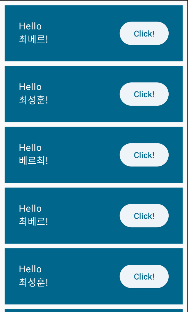 여기까지 하면 리사이클러뷰, 리스트뷰 처럼 스크롤이 될 줄 알았는데 스크롤은 되지 않는다. 단순히 세로로 배치한 것이다.