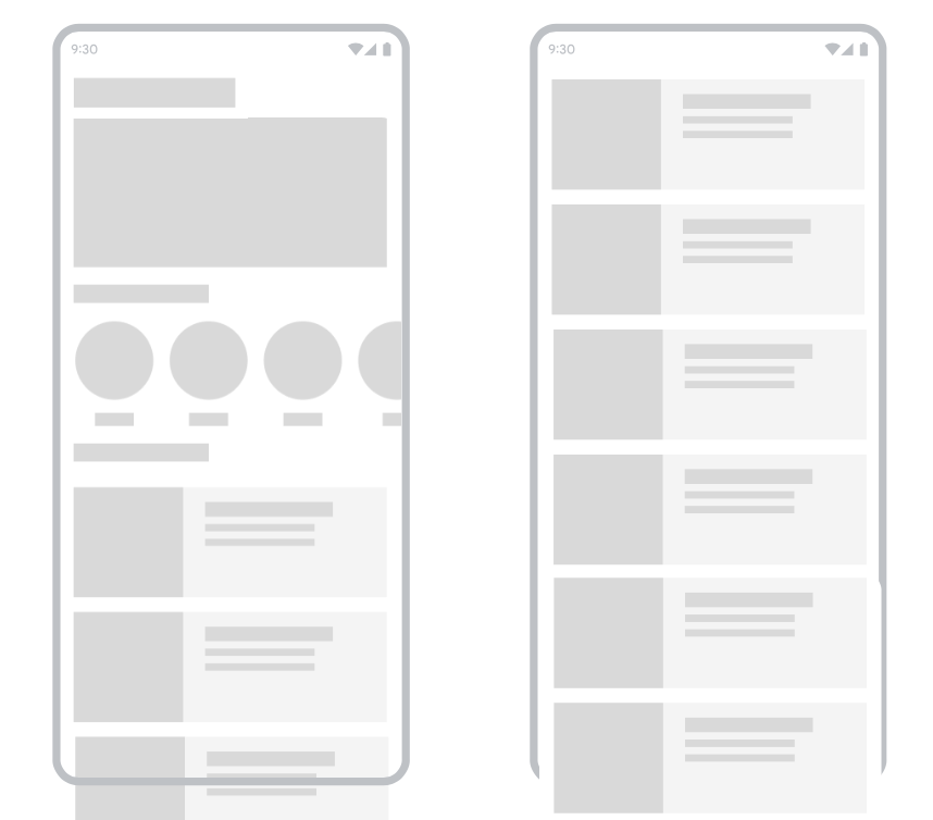 MotionLayout 은 앱에서 모션 및 위젯 애니메이션을 관리하는 layout type 입니다. MotionLayout 과 RecyclerView 를 같이 사용해서스크롤 위치에 맞춰 상단 배너와 리사이클러뷰를 collapsing 한다면 동일한 화면을 구현할 수 있습니다. 그러나 더 복잡한 화면이면 한계가 있을 것으로 보입니다.