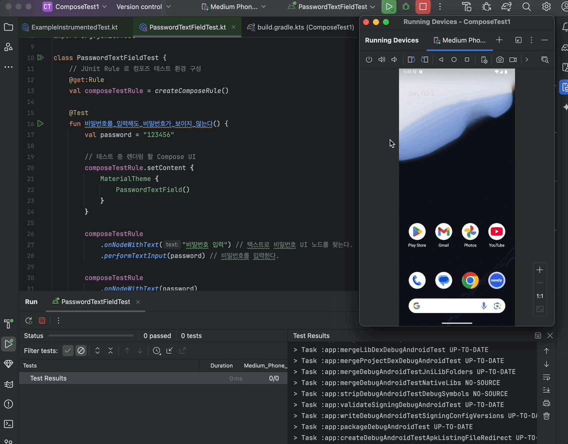 실행 결과.. 성공! 이런식으로 Composable 함수를 테스트 할 수 있습니다.